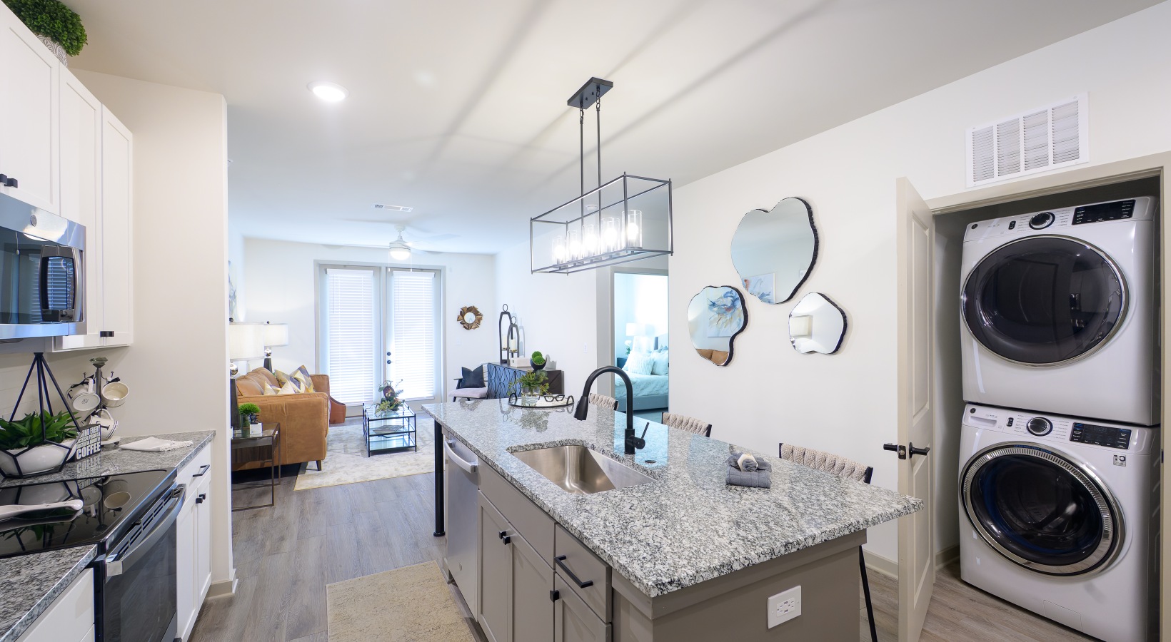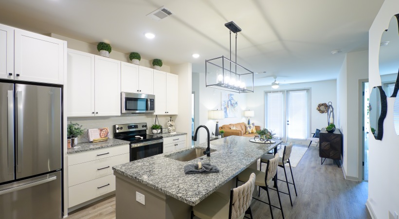 Explore the photo gallery of The Tomlin in Snellville, GA, and discover what sets our luxury apartments and townhomes apart in Gwinnett County. From our resort-style heated saltwater pool and private cabanas to beautifully landscaped outdoor lounges, every image showcases the elevated lifestyle that awaits. Step inside our studio, 1-, 2-, and 3-bedroom homes to see soft-close cabinetry, oversized islands, custom lighting, and natural oak floors—all designed to deliver modern comfort and timeless style.